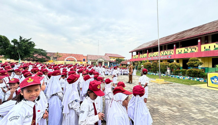Lurah Salembaran Jaya hadir sebagai "Pembina Upacara" pada kegiatan apel pagi di SDN Pemukiman.